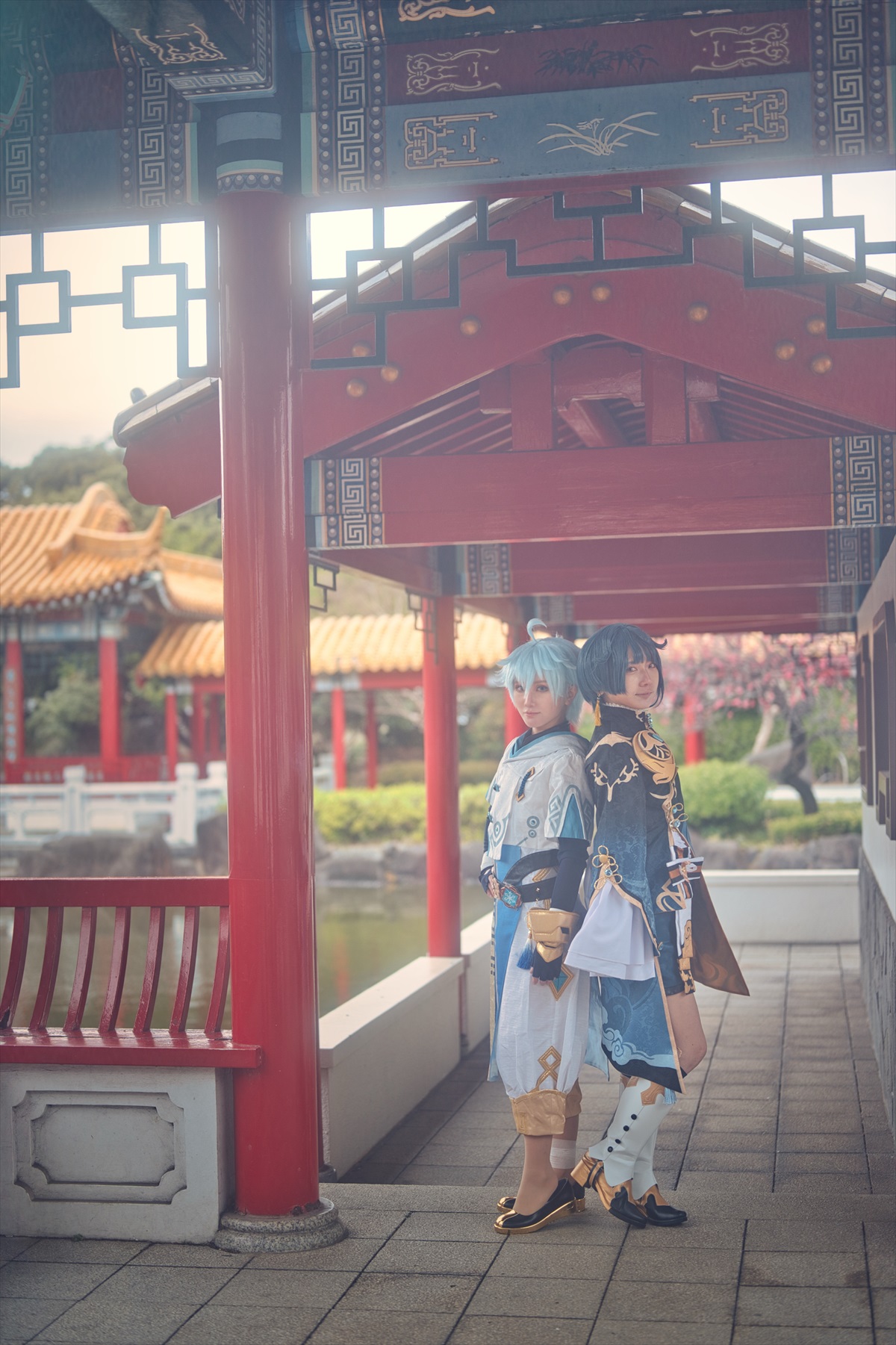 当日は梅などの花々が咲いており、美しい中華庭園にとても映えておりました。