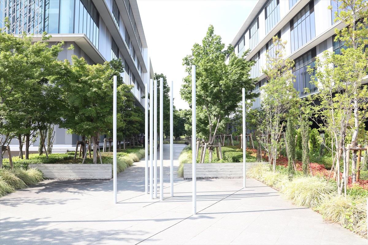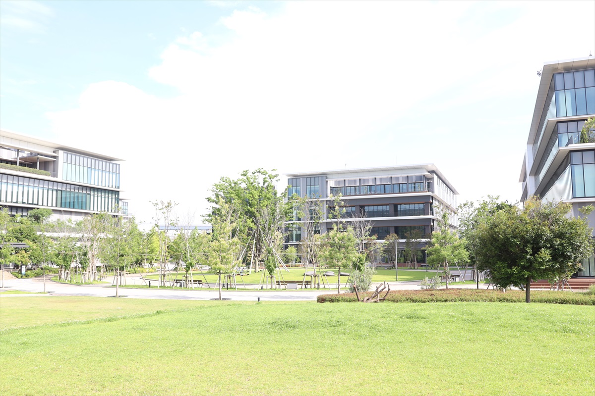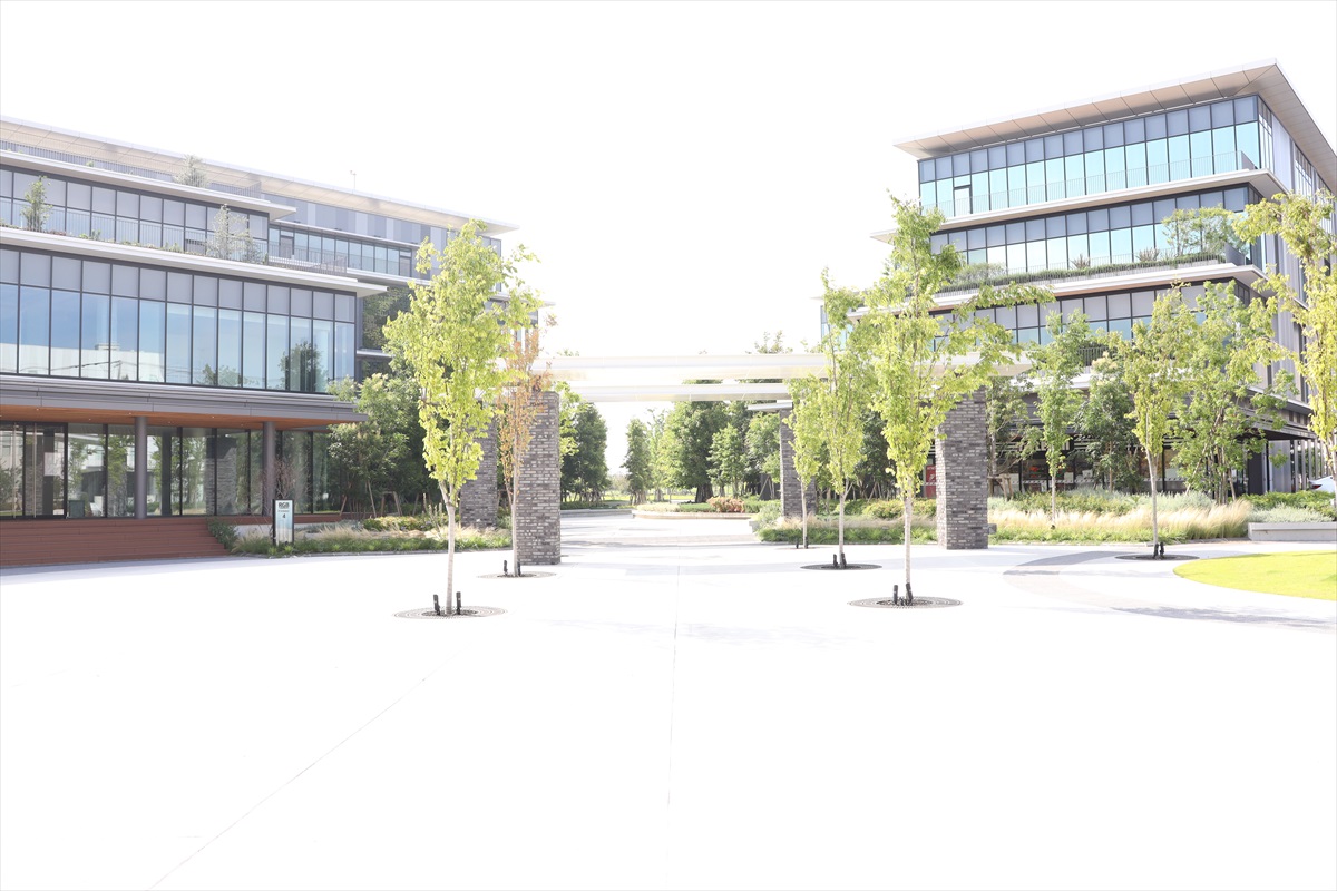研究施設という閉鎖的な空間のイメージを変え、研究者と一般市民が交わる空間になってほしい。地域の方の居場所でもあり、共同研究者のための居場所でもある。そういった、多世代、様々な方が同じ空間にいるオープンイノベーションにしたいという強い思いから建築物や樹木等のみどりの設計をしたこともあり、魅力的な空間になっています。